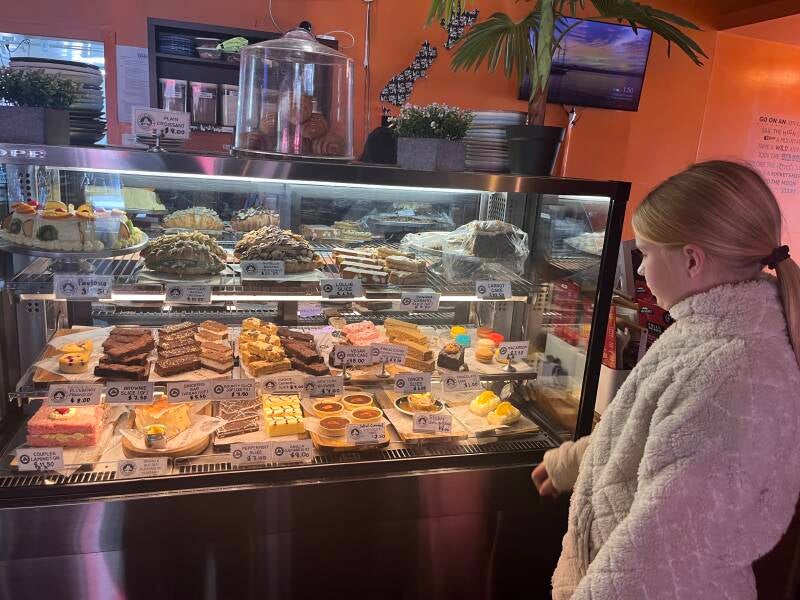 We duiken een gezellige bakker met cafégedeelte in en we trakteren ons op iets lekkers. Mijn dochter had moeite met kiezen tussen al dat lekkers! En de cappuccino's hier zijn...verrukkelijk! 👌