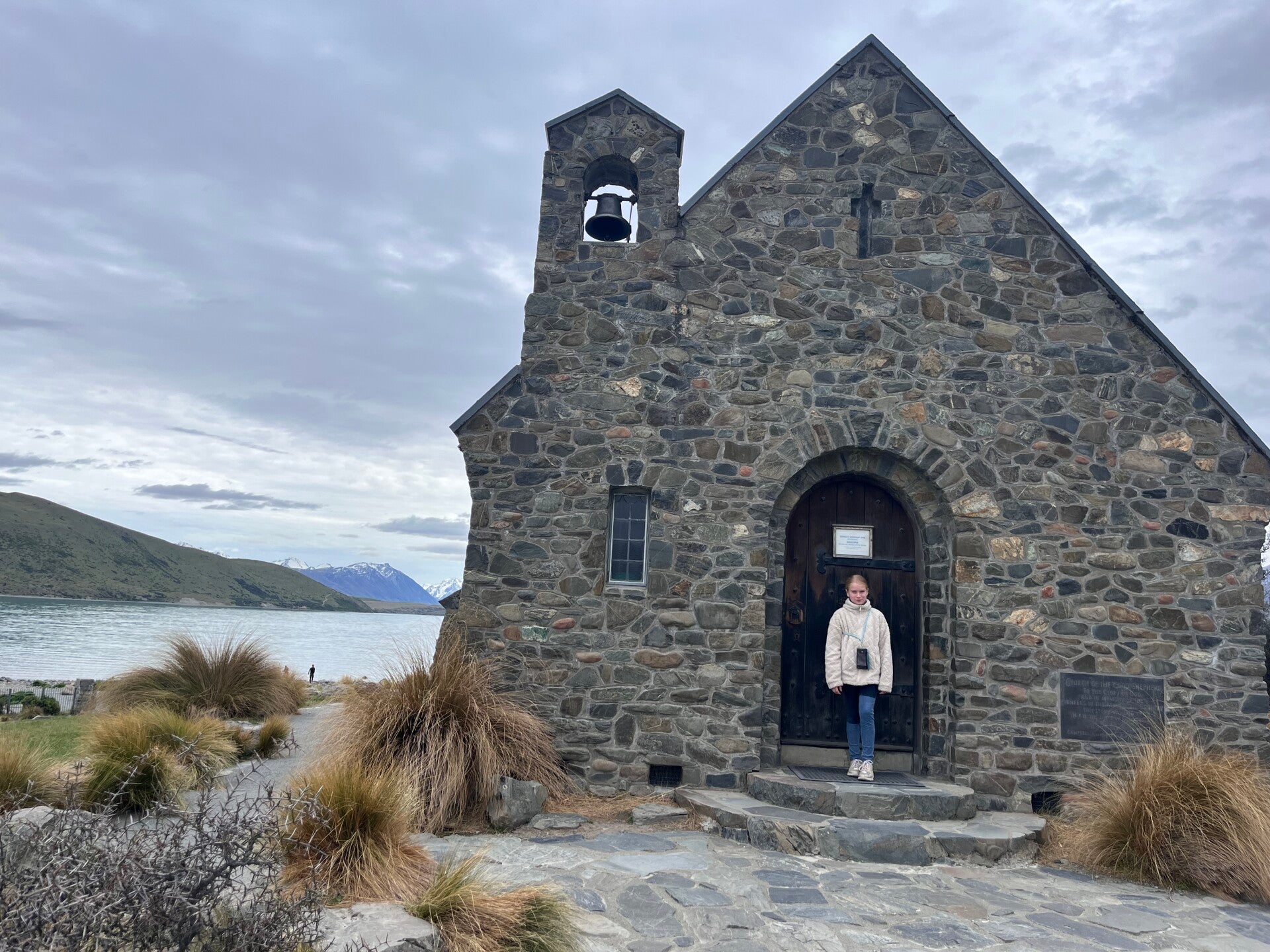 Vanochtend begonnen we de dag trouwens heel anders. We gingen kijken bij de beroemde 'church of the good shepherd' die op een hele mooie plek aan het meer staat. Het meest gefotografeerde kerkje van Nieuw Zeeland. Net toen wij er waren ging het kerkje open en mochten we naar binnen. Een gids vertelde over de geschiedenis terwijl we genoten van het geweldige uitzicht over het meer en de bergen. En tenslotte zong zijn vrouw het prachtige 'amazing grace' a capella. Ontzettend mooi.